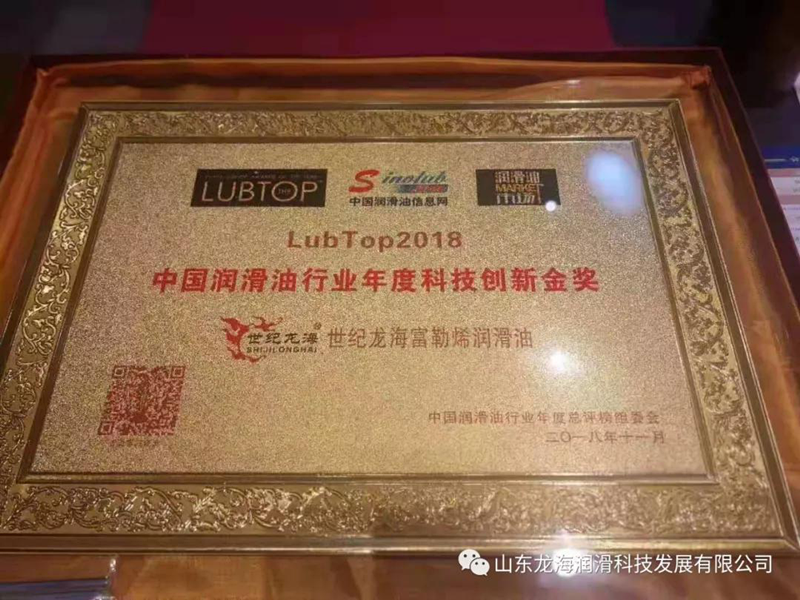 新時(shí)代、新科技、新動(dòng)能!山東龍海潤(rùn)滑科技發(fā)展有限公司,以初心不改、責(zé)任依然、精進(jìn)不休、創(chuàng)新不止的“龍海精神”,走出了一條自主發(fā)展、國(guó)貨自強(qiáng)的“龍海之路”! 在技術(shù)研發(fā)創(chuàng)新上,緊跟國(guó)際潤(rùn)滑油行業(yè)發(fā)展潮流步伐,特聘請(qǐng)行業(yè)資深專(zhuān)家,針對(duì)國(guó)內(nèi)外發(fā)動(dòng)機(jī)動(dòng)力輸出特點(diǎn)和尾氣排放處理要求,對(duì)配方不斷改進(jìn)和完善,研發(fā)適合中國(guó)路況和工況的汽車(chē)潤(rùn)滑油產(chǎn)品,適時(shí)滿(mǎn)足車(chē)輛升級(jí)換代和排放環(huán)保要求。精心研發(fā)的具有節(jié)能,減排,滑動(dòng)摩擦變成滾動(dòng)摩擦抗磨減磨,降低油溫,延長(zhǎng)潤(rùn)滑油的壽命,減震降噪,綠色環(huán)保,四大功能的新科技產(chǎn)品“世紀(jì)龍海富勒烯潤(rùn)滑油”,榮獲潤(rùn)滑油和汽車(chē)后市場(chǎng)行業(yè)奧斯卡 LubTop2018中國(guó)潤(rùn)滑油行業(yè)年度科技創(chuàng)新金獎(jiǎng),